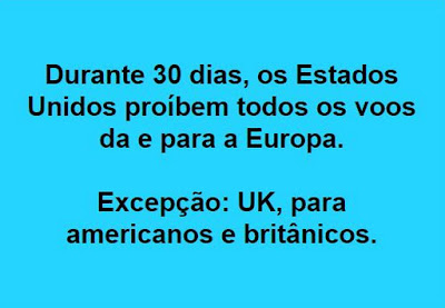 USA BARRA EUROPA Fonte: Da Literatura - Eduardo Pitta | Publicado em: 2020-03-01 00:00 Covid-19, Política Internacional, Pandemia quinta-feira, 12 de março de 2020 USA BARRA EUROPA Inenarrável? Covid-19 oblige. Clique na imagem. à(s) 08:00 Texto originalmente publicado em Da Literatura - Eduardo Pitta Leia também QUARENTENA ATLÂNTICA via Da Literatura - Eduardo Pitta BRASIL via Da Literatura - Eduardo Pitta COVID-19 via Da Literatura - Eduardo Pitta COVID-19 via Da Literatura - Eduardo Pitta COVID-19 via Da Literatura - Eduardo Pitta