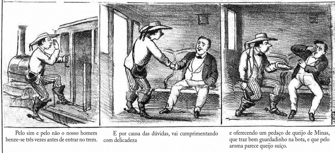 Publicadas no país em 1855 e em 1869, as primeiras narrativas ilustradas conciliam uma estética europeia com uma crítica aos costumes da época no Rio de Janeiro