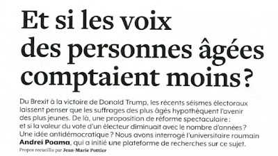 O n.º 141 da Philosophie Magazine (Agosto, 2020) publica sobre o assunto uma entrevista com Andrei Poama, docente da Universidade de Leiden. Síntese: «Avec ce système, on passerait de Une Personne, Une Voix... à Un Futur, Un Vote.»