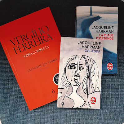 Prenda de Natal mega antecipada de outrém, Em nome da terra, de Vergílio Ferreira. De mim para mim, com uso de vales da Wook, os dois da Jacqueline Harpman ali em cima.