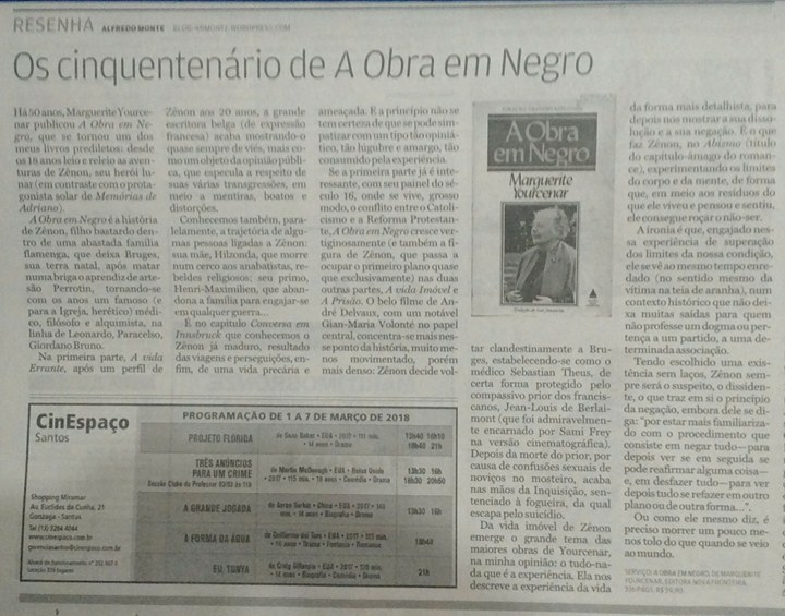Há 50 anos Marguerite Yourcenar publicou “A OBRA EM NEGRO”, que se tornou um dos meus livros prediletos: desde os 18 anos leio e releio as aventuras de Zênon, seu herói lunar (em contraste com o protagonista solar de “Memórias de Adriano”).