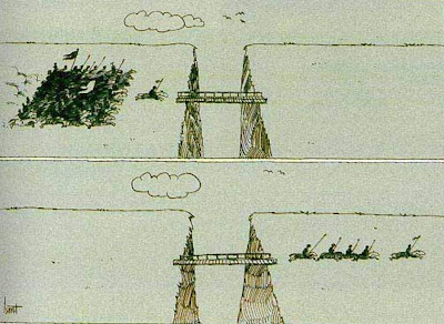 Quando se diz: “Fulano é a vanguarda da poesia brasileira de hoje”, a gente fica com a impressão de que a poesia brasileira é um grupo de gente indo numa direção, e que Fulano está centenas de metros à frente de todo mundo. Admiramos e invejamos Fulano pelo seu talento e pela sua coragem de partir na frente sozinho, descobrindo tudo por conta própria. E aí nos vem o maior erro de pensar em termos de vanguarda: achamos que o Poeta Vanguardista está mais adiantado do que nós em algum tipo de maratona, e que precisamos ultrapassá-lo. E a única maneira de ultrapassá-lo é fazer, mais ou melhor do que ele, aquilo que ele está fazendo.