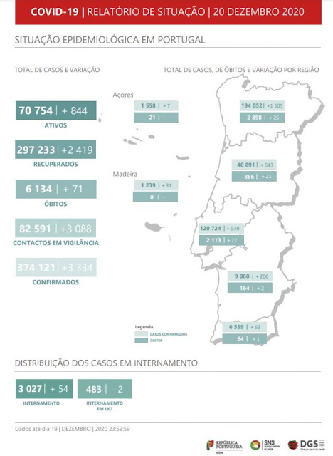Situação Covid-19 em Portugal, hoje.