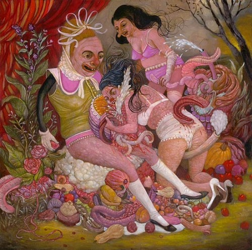 É a maneira como Cela constrói o livro, através de conversas ou cartas. Ele não isenta nem a si mesmo, colocando-se como personagem e compartilhando das grosserias, das cafajestadas, das picardias e atitudes varzeanas que exageram e tornam hipertrofiadas e grotescas nossa chamada vida sexual, ou pelo menos nossas práticas sexuais. Essas grosserias e exageros chegam a um ponto quase surreal nos textos, principalmente pela atitude paródica do autor com relação a nomes de personagens, trocadilhos e uso do infinito, anatômica e metaforicamente, vocabulário lascivo.