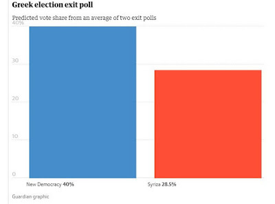 Uma sondagem à boca das urnas feita após as eleições de hoje, dá a vitória, com maioria folgada, previsivelmente absoluta, ao partido Nova Democracia (centro-direita), actualmente liderado por Kyriakos Mitsotakis, 51 anos, antigo banqueiro, deputado desde 2004.