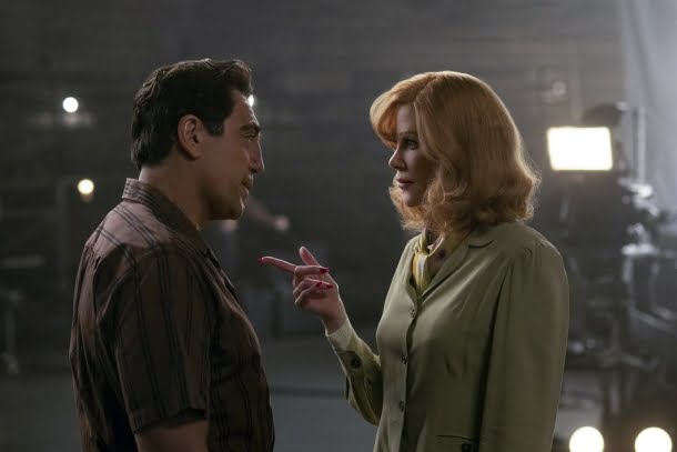 Glen Wilson / AmazonEm “Apresentando os Ricardos”, Nicole Kidman interpreta uma Lucille Ball que atravessa a semana mais difícil de sua carreira. Acusada de ser simpatizante do Partido Comunista, perdendo papéis importantes no cinema, sendo pressionada pela audiência, precisando concluir uma parte do roteiro de “I Love Lucy” com o risco de ser detonada pelos maiores jornais que a cobrem e de ter baixa receptividade do público, Lucille, a atriz mais celebrada da comedia de situação americana, tenta transformar água em vinho numa semana complicada, até desconfiar que, para a cereja do seu bolo, seu marido, o Desi Arnaz de Javier Bardem, a está traindo. Com sua carreira ameaçada e seu casamento em ruínas, Lucy precisa enfim utilizar de sua máscara como comediante e driblar os problemas, pelo menos, até o fim das gravações.