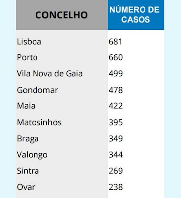 A situação, hoje. Os mapas são da DGS, enumerando o de baixo os dez concelhos mais afectados.
