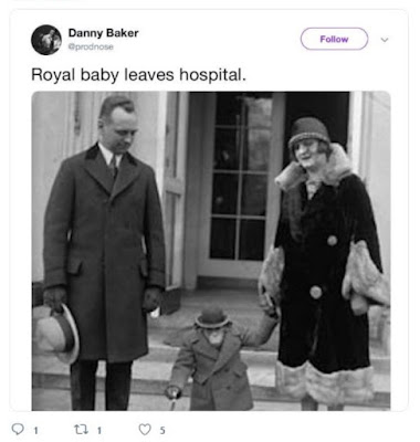 Danny Baker, actor e guionista de stand-up comedy, tinha um programa semanal na BBC. Tinha. Foi hoje demitido por ter publicado um tuíte ilustrado com a imagem de um casal (representando os duques de Sussex) de mão dada com um chimpanzé, e uma legenda inclassificável: «O bebé real sai do hospital.»