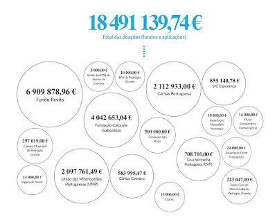 Pedrógão Grande recebeu até ao momento 18,5 milhões de euros de donativos em dinheiro. Desse total, 15 milhões já foram aplicados. A maior fatia saiu do Fundo Revita (o 'Fundo de Apoio às Populações e à Revitalização das Áreas Afectadas' pelos incêndios de Junho de 2017), fundo estatal que agrega a recolha de donativos em dinheiro. Talvez esteja na altura de prestar contas ao país.