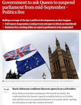 A suspensão do Parlamento é um privilégio real, mas o pedido do primeiro-ministro é um pro forma, uma vez que Sua Majestade não interfere nas decisões do Governo.