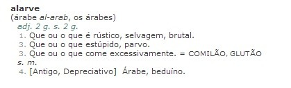 Sempre ouvi dizer aqui em casa que não devíamos comer como uns alarves, isto é, tínhamos de comer com modos á mesa. Ainda hoje usamos esta expressão...Ora outro dia tive de ir ao dicionário procurar uma palavra na zona do A e passei os olhos pela palavra alarve. Ri-me (é bastante divertido abrir o dicionário ao calhas, cada palavra...) enquanto lia o significado á minha mãe que estava perto: "olha alarve quer dizer árabe, que engraçado. Wait...É melhor ir confirmar isto".