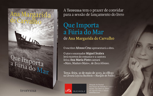 Hoje será o lançamento de mais um dos romances finalistas do Prémio Leya, recentemente entregue a Nuno Camarneiro. Trata-se de Que Importa a Fúria do Mar, de Ana Margarida de Carvalho, uma excelente surpresa se pensarmos que é uma estreia na ficção (embora, de algum modo, não estivéssemos à espera de menos da grande jornalista que é a autora). Colocando duas gerações frente a frente – um homem que foi operário vidreiro no antigo regime e uma jornalista nascida provavelmente depois do 25 de Abril que tem de o entrevistar e cria, a partir daí, um estranho relacionamento com ele –, o romance combina afinidades com diferenças, infâncias terríveis com memórias peculiares do mar, decepções e alegrias com amores impossíveis. O escritor Afonso Cruz fará a apresentação na Livraria Buchholz, às 18h30, onde estará igualmente o actor e encenador Miguel Seabra para ler excertos e a cantora lírica Ana Maria Pinto para nos brindar com Maio, Maduro Maio, de Zeca Afonso, a canção donde foi retirado o título do livro. Apareçam.