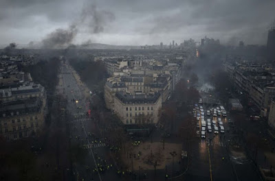 Tenho estado a acompanhar a tranquibérnia francesa através da France 24. Imagens terríveis, sobretudo as de Paris, onde estão a ser incendiadas milhares de viaturas particulares, erguidas barricadas, vandalizadas lojas de luxo, cafés, restaurantes e agências bancárias. Macron parece vir a caminho da cimeira do G20, porque, diz ele, não gosta de violência. Entretanto, Édouard Philippe, o primeiro-ministro, cancelou a ida à Polónia onde participaria na cimeira do clima. Para a próxima madrugada está prevista uma reunião do gabinete de crise. Já toda a gente percebeu que chegámos ao turning point.