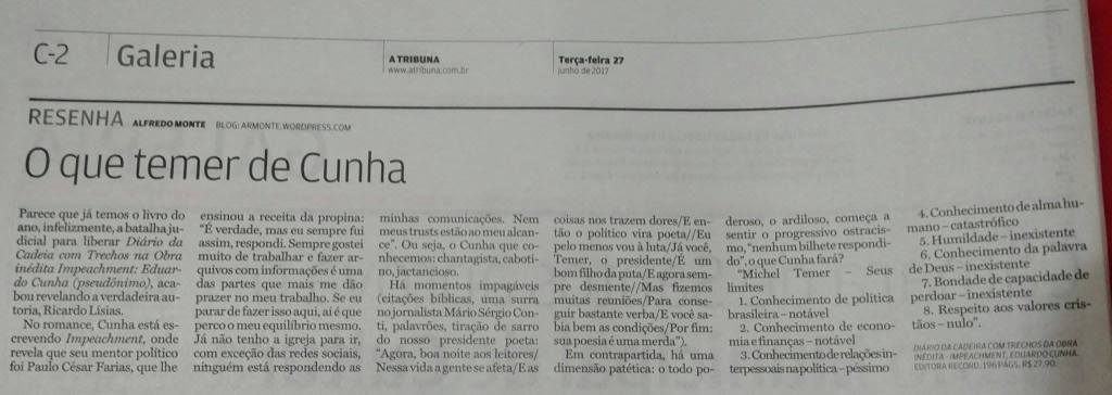 (Uma versão da resenha abaixo foi publicada originalmente em A TRIBUNA de Santos em 27 de junho de 2017)