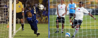 Jogador e goleiro que “escolhem o canto” estão, de certa forma, tentando ignorar o que o adversário vai fazer. Contam com a sorte. Mais interessante é a disputa entre um cobrador e um goleiro que estão com os olhos fitos um no outro – Romário chutando contra Dida. O que temos aí é um duelo de talentos, um duelo de personalidades, uma espécie de namoro entre espertalhões, onde cada qual não perde um movimento sequer do outro, e sabe que seus próprios movimentos estão sendo igualmente observados. Balé, xadrez, esgrima, onde ambos confiam que o gesto final será seu.
