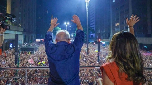 Na sua foto de celebração pela recém-eleição enquanto Presidente do Brasil, consegue-se ver a sua mão esquerda, com anel de casamento e sem o dedo mindinho, estendida em cima da bandeira do Brasil, sendo talvez uma das imagens mais representativas da sua figura política. No entanto, o Brasil é agora um país extremamente polarizado, com o bolsonarismo extremamente organizado. Resta ver se Lula conseguirá abraçar um país dividido, governando não só para os que votaram nele, mas para os tais 252 milhões de brasileiros.