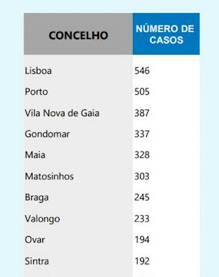 A situação, hoje. Os mapas são da DGS, enumerando o de baixo os dez concelhos mais afectados.