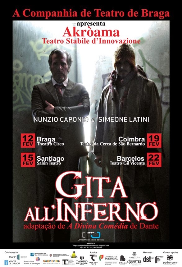 Poster da peça de teatro Gita all'Inferno na sua passagem pelo norte de Portugal