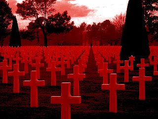 Cemitério militar Norte americano, em Colleville-sur-Mer, Normandia, França, onde estão enterrados milhares de soldados americanos mortos na Segunda Guerra Mundial. (Retirado da Wikipedia e editado por Rommel Werneck no PhotoFiltre)
