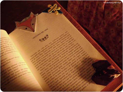 Ando sem inspiração para escrever. Há alturas assim...Ainda por cima estou outra vez constipada e tenho um ouvido meio tapado e a zunir. Devia ter cuidado com o frio e evitar os fones, mas não faço nenhuma das duas coisas. Não consigo passar o dia sem música...Enfim, enquanto espero que a vontade de divagar sobre assuntos profundos (Guerra da Crimeia outra vez? gente, qual é a necessidade disso? Deviam era usar Axe) volte decidi fazer uns marcadores para aumentar a minha colecção. Como todos os amantes de livros adoro estes pequenos e úteis objectos, mas não tenho muitos assim originais. Após uma pesquisa encontrei algumas ideias executáveis, mesmo para quem é um zero á esquerda em trabalhos manuais como eu: