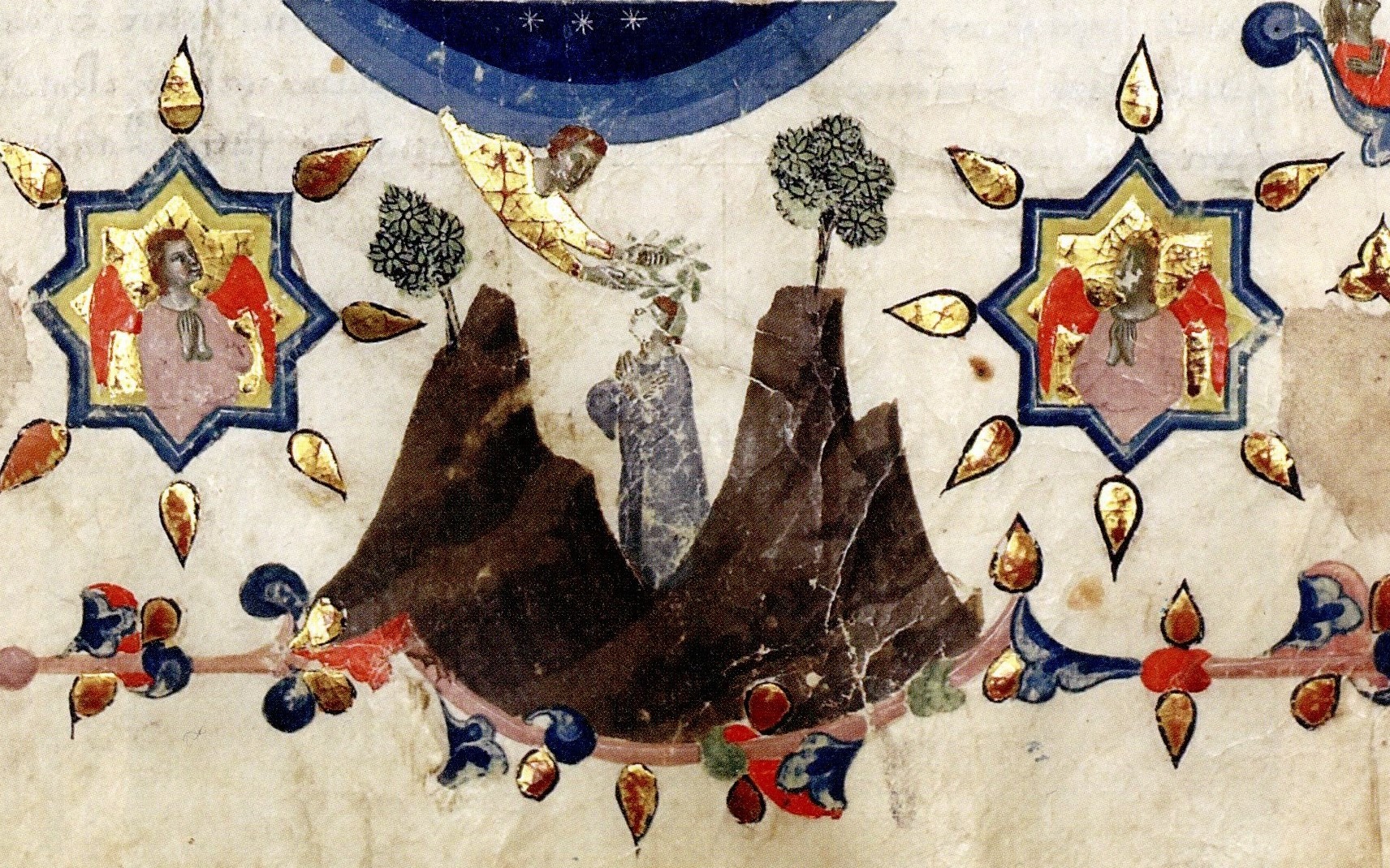 Imaginando-o assim, o leitor estará prestando homenagem a um sonho de Dante, que pretendia ser coroado de louros, em razão de sua Comédia, no batistério florentino de São João Batista, onde fora batizado em pequeno: “com outra voz então, com outros trajes / retornarei poeta, e na fonte / do meu batismo, tomarei a coroa” (Pd., 25, 7-9). O modelo perseguido por Dante era a coroação poética de seu contemporâneo, o literato paduano Albertino Mussato (1261-1329), laureado em 1315, na sequência da publicação de uma muito apreciada tragédia de veio senequiano, intitulada Ecerinis, reinventando uma nebulosa tradição de coroação poética que depois seria continuada por Petrarca (1304-1374), em 1341, e, em sua esteira, por uma série de humanistas. É nesse contexto, mais precisamente em 1337, que um dos três manuscritos mais antigos da Comédia, copiado por Francesco di ser Nardo, representa Dante coroado de louros por uma figura que vem diretamente do Céu, na página em que se abre o Paraíso.