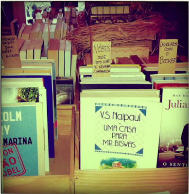 Descobri esta livraria há pouco mais de um ano por um feliz acaso na citadela de Cascais e já a mencionei antes, embora apenas de passagem. Com caixas de vinho a fazer de prateleiras e categorias como "Livros que metem muito medo" e "Nóbeis, que isto não é nenhuma chafarica", é muito fácil perder muito tempo a olhar para as imensas obras nas estantes. Pessoalmente, apanho-me sempre a sentar-me no chão para ver os autores brasileiros e os africanos e a impedir outras pessoas de passarem.