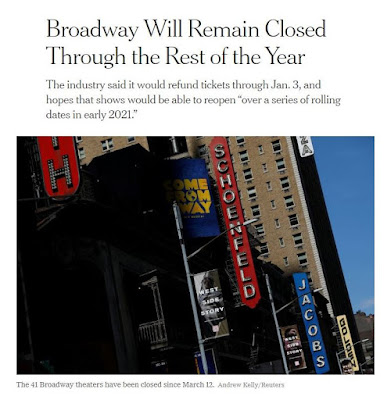 Agora é oficial: os teatros e outras casas de espectáculos da Broadway vão permanecer encerrados até 3 de Janeiro de 2021. Se houver condições, as reaberturas ocorrerão a partir dessa data.