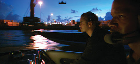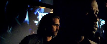Aqui, em Miami Vice, isso acaba por ficar mais nítido na maneira como Mann estabelece uma relação entre seus personagens e o espaço na qual os cercam: constantemente, o diretor decupa as conversas entre Sonny e seu parceiro, Rico (Jamie Foxx) em planos de fundo que enfocam a imensidão urbana por trás da dupla, reforçando o quanto estão consumidos dentro dessa realidade urbana que pouco possibilita os policiais encontrarem uma fuga legítima dessa realidade.