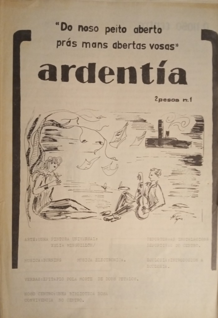 Hoxe faría anos anos Xela Arias, nacida este día no ano 1962. Hai xa semanas que preparo este apuntamento co que obtiven un resultado que, dalgún xeito, clarexa a incógnita da súa participación, ou non, na revista escolar Ardentía que un grupo de alumnado do IES Castelao redactaba e vendía no curso escolar 1978-1979, cando Xela realizaba 3º de BUP. Actualmente non se conserva ningún exemplar na biblioteca do centro polo que tiven que apelar á memoria e esforzo de diversas persoas e amigas que, finalmente, me facilitaron unha copia das tres entregas existentes da revista e a quen agradezo moito a axuda prestada.
