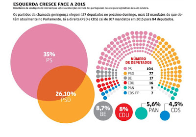 INTERCAMPUS Fonte: Da Literatura - Eduardo Pitta | Publicado em: 2019-10-01 00:00 política portuguesa, sondagens eleitorais, eleições Sondagem da Intercampus para Correio da Manhã e o Negócios, divulgada hoje. PS = 35,0% / PSD = 26,1% / BE = 8,7% / CDU = 8,0% / PAN = 5,6% / CDS = 4,5% O PAN ultrapassa o CDS. Maioria de Esquerda = 51,7%. Juntando o PAN, seriam 57,3%. Clique na imagem do Negócios. Texto originalmente publicado em Da Literatura - Eduardo Pitta Leia também INTERCAMPUS via Da Literatura - Eduardo Pitta INTERCAMPUS via Da Literatura - Eduardo Pitta INTERCAMPUS via Da Literatura - Eduardo Pitta INTERCAMPUS via Da Literatura - Eduardo Pitta INTERCAMPUS via Da Literatura - Eduardo Pitta