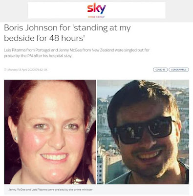 Nos seus noticiários de hoje, a Sky News destaca Luís Pitarma, o enfermeiro de Aveiro que a PAF (o Governo Passos & Portas) empurrou para fora do país, e de Jenny McGee, a neo-zelandesa que também tratou de Boris Johnson.