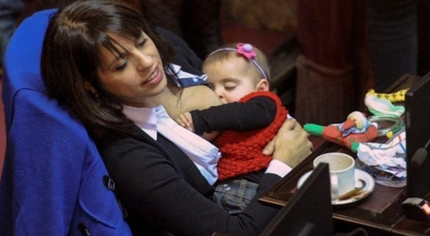 (gloriosa foto tirada o ano passado no parlamento argentino: a deputada Victoria Donda Perez alimenta a sua filha de 8 meses)
