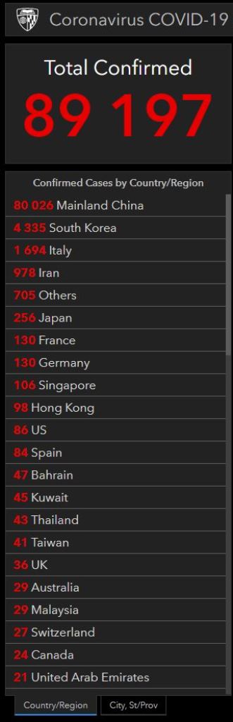 O Covid-19 media-se pelos seguintes números, de acordo com a Johns Hopkins School of Medicine (a melhor fonte sobre o assunto), quando eram 04:30 da madrugada em Baltimore e 09:30 em Portugal: