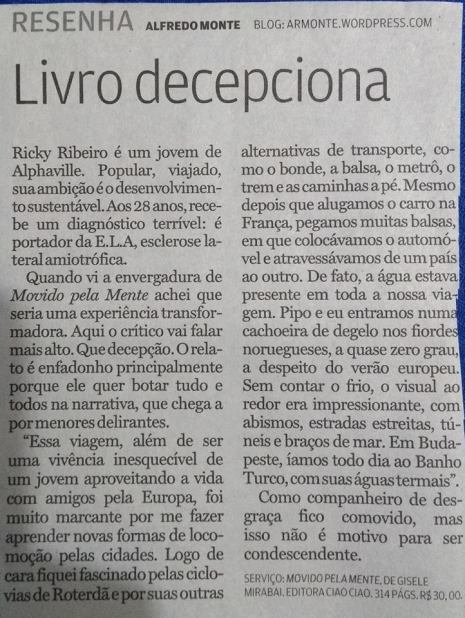 Quando vi a envergadura de “MOVIDO PELA MENTE” achei que seria uma experiência transformadora. Aqui o crítico vai falar mais alto. Que decepção. O relato é enfadonho principalmente porque ele quer botar tudo e todos na narrativa, que chega a por menores delirantes: “Essa viagem, além de ser uma vivência inesquecível de um jovem aproveitando a vida com amigos pela Europa, foi muito marcante por me fazer aprender novas formas de locomoção pelas cidades. Logo de cara fiquei fascinado pelas ciclovias de Roterdã e por suas outras alternativas de transporte, como o bonde, a balsa, o metrô, o trem e as caminhas a pé. Mesmo depois que alugamos o carro na França, pegamos muitas balsas, em que colocávamos o automóvel e atravessávamos de um país ao outro. De fato, a água estava presente em toda a nossa viagem. Pipo e eu entramos numa cachoeira de degelo nos fiordes noruegueses, a quase zero grau, a despeito do verão europeu. Sem contar o frio, o visual ao redor era impressionante, com abismos, estradas estreitas, túneis e braços de mar. Em Budapeste, íamos todo dia ao Banho Turco, com suas águas termais”.