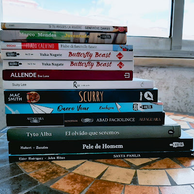 Uma das novidades do mês veio directamente de Itália como surpresa para o meu aniversário: Fiabe di fanciulle fatate, de Italo Calvino, após eu ter descoberto que as Fiabe Italiane são adequadas a leitores com cinco anos ou mais (logo, possivelmente tenho aptidão linguística suficiente). Como prenda de mim para mim, decidi por Eva Luna, de Isabel Allende.