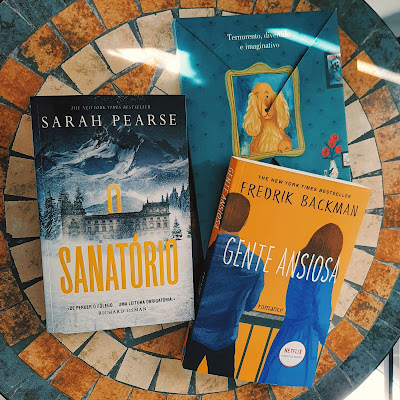 Porque a minha morada fiscal é diferente daquela onde efectivamente passo os meus dias, e porque essa morada foi afectada pelo covid-19 em Dezembro, recebi algum correio inesperado da Porto Editora, já em Janeiro, a saber: Flush - Biografia de Um Cão, de Virginia Woolf (adorei, já andava de olho no livro); Gente Ansiosa, de Fredrik Backman; e O Sanatório, de Sarah Pearse.
