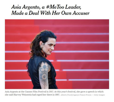 Asia Argento, uma das treze mulheres que em 2017 acusaram o produtor Harvey Weinstein de abuso sexual, quis comprar o silêncio do menor abusado por ela, em Maio de 2013. A vítima, o actor e músico de rock Jimmy Bennett, tem hoje 22 anos. Mas no dia do abuso tinha 17, ou seja, era um menor face à lei da Califórnia, onde a autodeterminação sexual só se atinge aos 18. Depois de ajudar a fundar o movimento MeToo, a viúva de Anthony Bourdain tentou subornar Jimmy com 380 mil dólares. Perturbado com a repercussão traumática do caso Weinstein, o jovem actor exige agora uma indemnização de 3,5 milhões de dólares, a título de «sofrimento emocional, assalto e agressão». Asia Argento, que se gabava de liderar o campo de caça a Weinstein, tem oportunidade de provar o próprio veneno.
