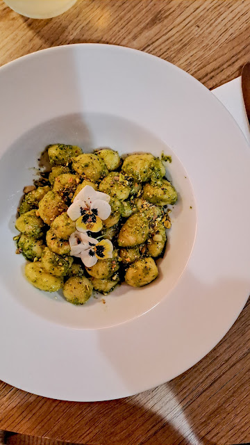 Para entrada, pedimos um trio de petiscos, em forma de bruschettas, numa viagem de sabores que nos leva do Norte ao Sul de Itália. Como prato principal, optei pelo Gnocchi Al Pesto, com pesto de manjericão, pinhões e parmesão, e uma limonada caseira. E só posso tecer elogios a estas iguarias, porque, desde a apresentação à confeção, estava tudo no ponto.
