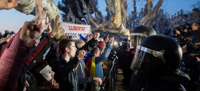 Em Barcelona, centenas de manifestantes romperam o cordão policial que defendia o Parque de la Ciutadella, em protesto contra o adiamento, sine die, da investidura do próximo Presidente da Generalitat. A intenção é acamparem ali.