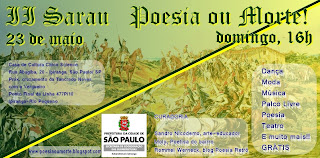 Amigos, o meu soneto foi lido no vídeo acima por Eliene Dantas Taveira, poetisa da CAPPAZ (Confraria de Artistas e Poetas pela Paz) no I Sarau "Poesia ou Morte!" Aguardo a presença de vocês no próximo evento, isto é, 23 de maio, às 16h. Aqueles que não estejam em São Paulo podem colaborar divulgando o evento para os contatos de São Paulo e seguindo o blog. Estamos com poucos seguidores!
