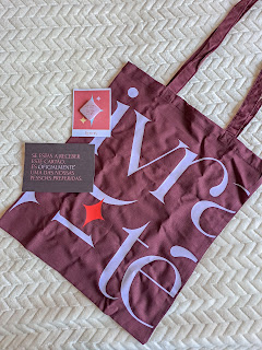 A Rita da Nova e a Joana da Silva juntaram-se à Cor Sem Fim para lançarem uma linha de merch do Livra-te, podcast que ouço religiosamente todas as quartas-feiras. A coleção conta com dois sacos de pano, um crachá e umas meias de rodapé. Claro que não resisti e encomendei um dos sacos de pano (a versão mais escura) e o crachá, que fica muito bem na minha estante (até encontrar o casaco ideal para o exibir). Os artigos são ainda mais bonitos ao vivo. E acho que podem ser uma excelente prenda (natal ou aniversário) para um amigo/familiar livrólico, independentemente de conhecer ou não o Livra-te. Talvez o crachá seja o mais limitador nesse sentido, mas as outras opções não têm essa fidelização, mesmo tendo o nome do clube.
