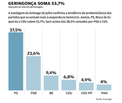 Sondagem Aximage divulgada hoje no Correio da Manhã e no Negócios. A continuar assim, está tudo dito.