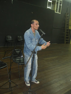 André Priori declamando sem ler e gesticulando no II Poesia ou Morte!