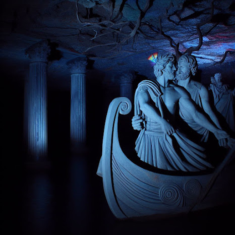Ao redor, em lazúli, o riacho Acheronte