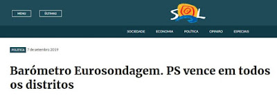 Estudo da Eurosondagem divulgado hoje no SOL, Porto Canal, Diário de Notícias da Madeira e Diário Insular dos Açores.