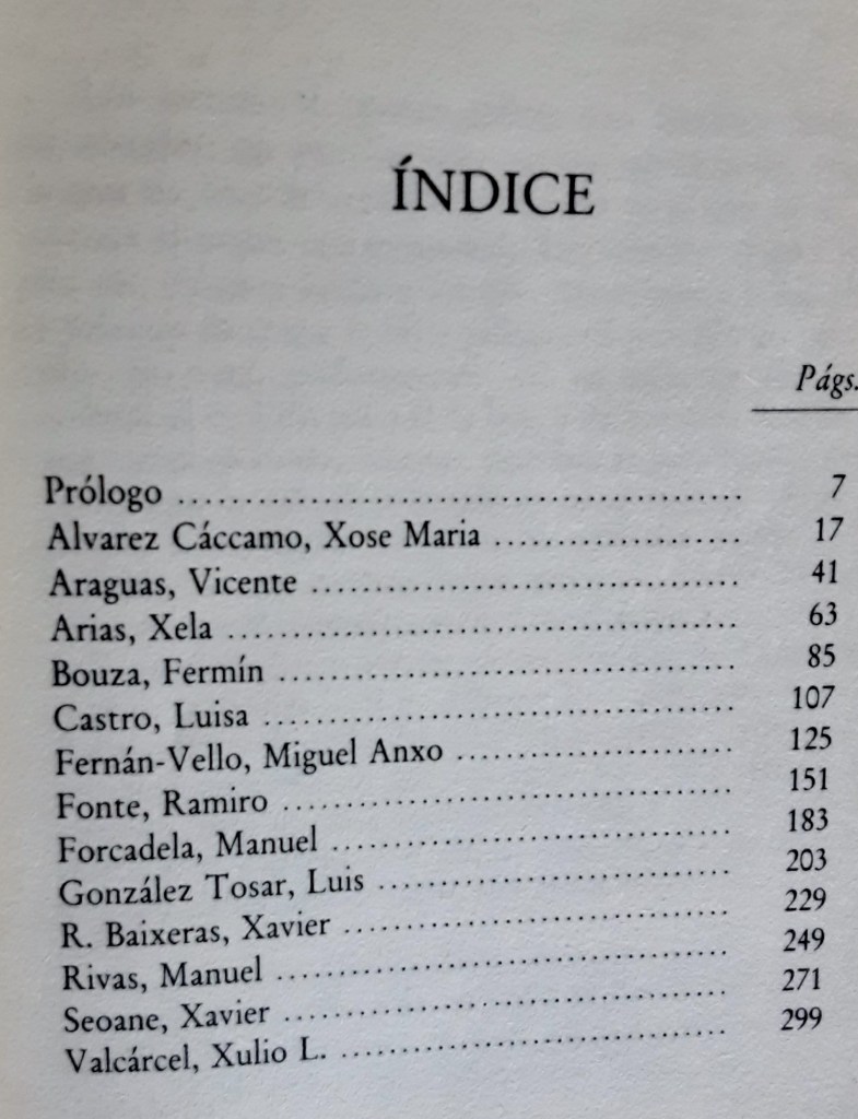 Todos eles aparecen con traducións ao castelán que -segundo indica o prologuista- foron realizadas pola propia Xela Arias.
