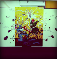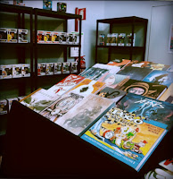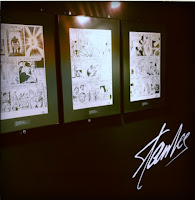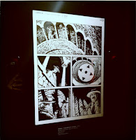 Mas, adiante - este ano, ao contrário do ano passado, ia com bastante curiosidade quanto às exposições. O meu primeiro entusiasmo era o "30 anos, 30 cartazes", mas não sei se foi falha minha - não vi lá 30 cartazes, parecia haver um lapso grande de anos em falta. Nomeadamente, tinha curiosidade quanto ao cartaz do ano 2000... que não vi. Quem me conhece minimamente, sabe que eu estava numa efusão discreta quanto aos "80 Anos do Batman", e não desiludiu minimamente. Mais que isso, só me deu uma enorme vontade de rever os filmes do Michael Keaton, de finalmente me sentar com a colecção da Levoir deste ano, e ainda mais confusão sobre qual ou quais os livros da Levoir/DC lançados recentemente a adquirir.