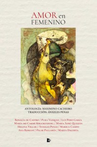 Da man de Ánxeles Penas recibe o Caderno da crítica este Amor en femenino, editado polo selo editorial Manuscritos. É este un libro publicado hai tempo en lingua galega, que presentaba unha escolma de poemas de amor realizados por mulleres a cargo de Maximino Cacheiro e que agora Ánxeles Penas traduce ao castelán. A antoloxía inclúe voces que van desde Rosalía de Castro, pasando por Pura Vázquez, Luz Pozo Garza, María do Carme Kruckenberg, María Xosé Queizán, Helena Villar, a propia Ánxeles Penas, Marica Campo, Ana Romaní e Pilar Pallarés ata a voz de Marta Dacosta. Os mellores desexos para a divulgación, fóra de Galicia, da nosa poesía de autoría feminina.