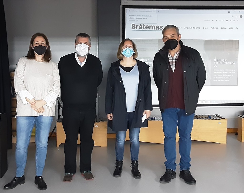 Manuel Bragado ofreceu un relatorio suxestivo e innovador baixo a denominación “Xela Arias 2021: unha chiografía” que é, ao tempo, unha chiscadela ás Fotografías que durante tantos anos editou Edicións Xerais. Introduciu a súa disertación facendo unha breve referencia á súa propia identidade dixital e ao proxecto que, en twitter e baixo a etiqueta de #XelaArias2021, vén desenvolvendo arredor de diversos aspectos que suscita a poliédrica figura de Xela Arias, ao ritmo de, cando menos, un chío ao día. E precisamente este foi o fío da súa intervención, isto é, unha revisión ou, máis ben, unha escolma dos chíos que, dedicados á autora de Tigres coma cabalos, resultan operativos para percorrer ou reconstruír, visualmente e con moi poucos caracteres, ángulos diversos de Xela Arias como son os estritamente biográficos e os que abrazan a súa dimensión como creadora compoñendo un fresco de indubidable interese para todo profesorado e alumnado que asistiu. Beizón, Manolo, pola túa achega. Velaquí unhas fotos do acto.