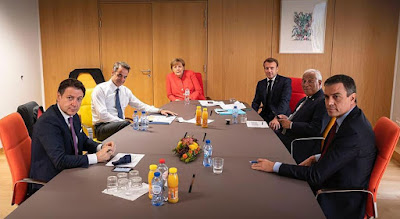 Terá sido nesta reunião, que juntou Merkel com Conte, Mitsotakis, Macron, Costa e Sánchez que ficou decidido o pacote final de 750 mil milhões de euros? Ou seja, 390 mil milhões a fundo perdido e 360 mil milhões em empréstimos. Contrapartida: os frugais passarão a pagar contribuições mais baixas.